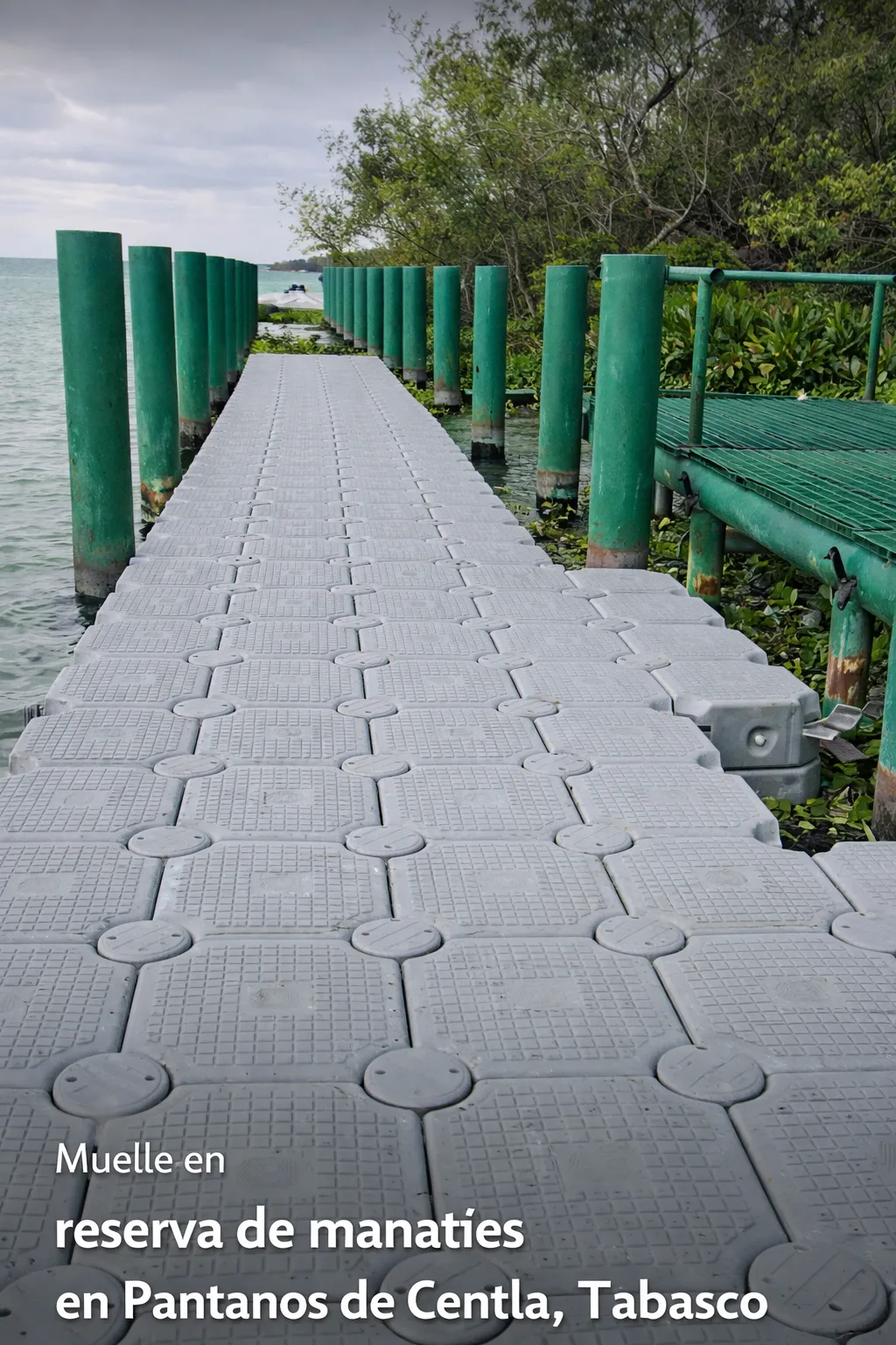 Plataforma flotante modular tipo sendero, diseñada para recorridos ecoturísticos seguros, con alta estabilidad, bajo mantenimiento y excelente integración al entorno natural.
